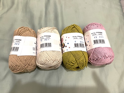 特地去買純棉線來做擦手巾,線材本身下水前有點硬,洗過之後才會軟些。